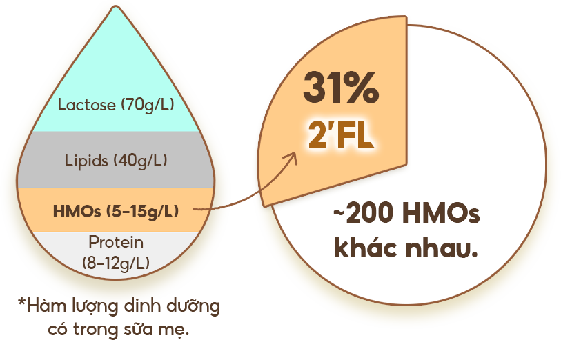 2’FL (2’-fucosyllactose) là thành phần có hàm lượng CAO NHẤT (31%) trong các HMO.